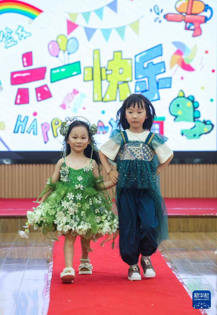 5月31日,在织里镇晟舍幼儿园,孩子们参加童装走秀。