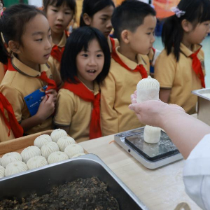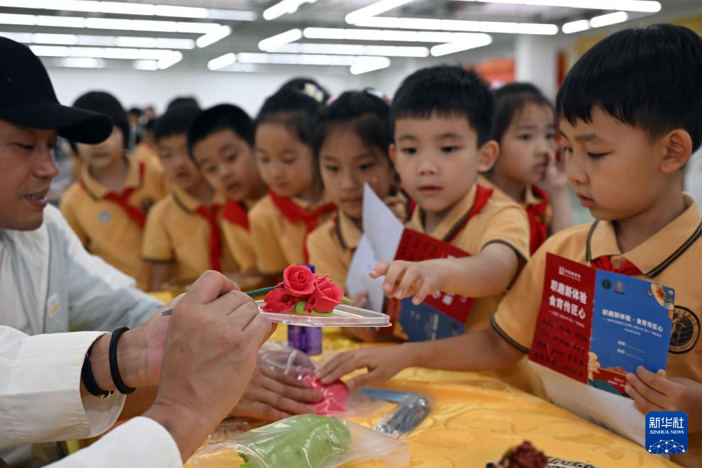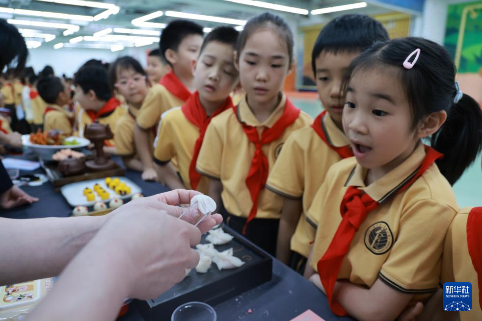 5月31日,松鹤楼的面点师为学生们展示面塑造型。