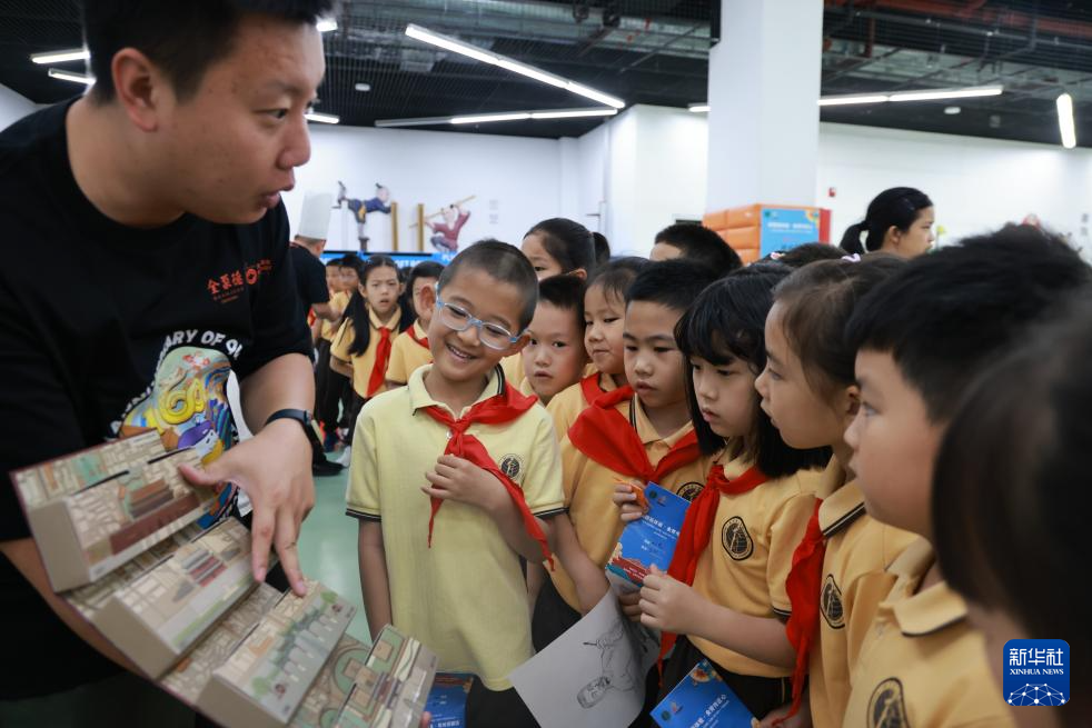 5月31日,全聚德的工作人员为学生们介绍北京中轴线的知识。