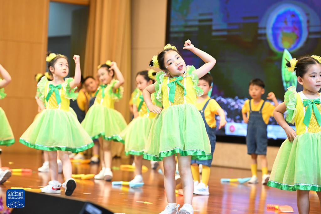 5月31日,孩子们在表演节目。