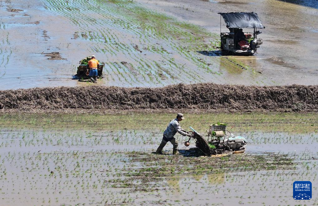 连日来,在天津市西青区精武镇智慧农业水稻种植基地,天津南源科芯生态农业科技有限公司组织种植工人对1500亩水稻田开展夏种工作,田间地头一派生机勃勃的农忙景象。