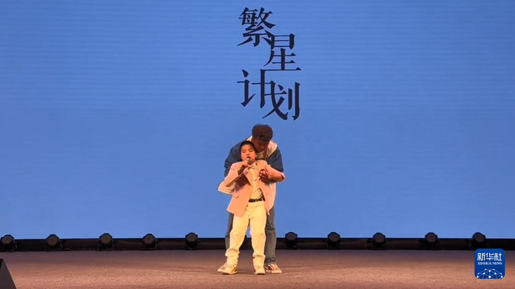 5月12日,爱马在吉林长春参加朗诵比赛时摔倒。父亲将他扶起后,爱马仍坚持朗诵(视频截图)。