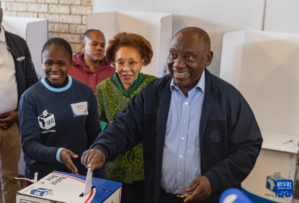 5月29日,南非现任总统拉马福萨在约翰内斯堡索韦托的一处投票站内投票。