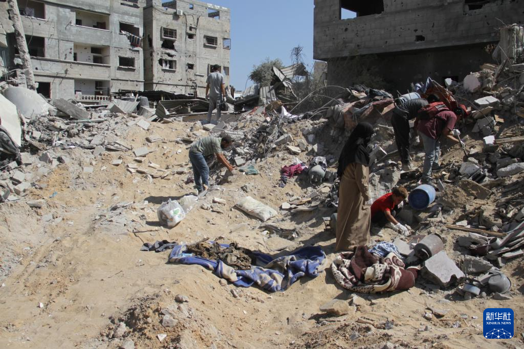 5月31日,在加沙地带北部杰巴利耶难民营,人们从废墟中搜集物品。