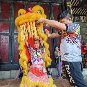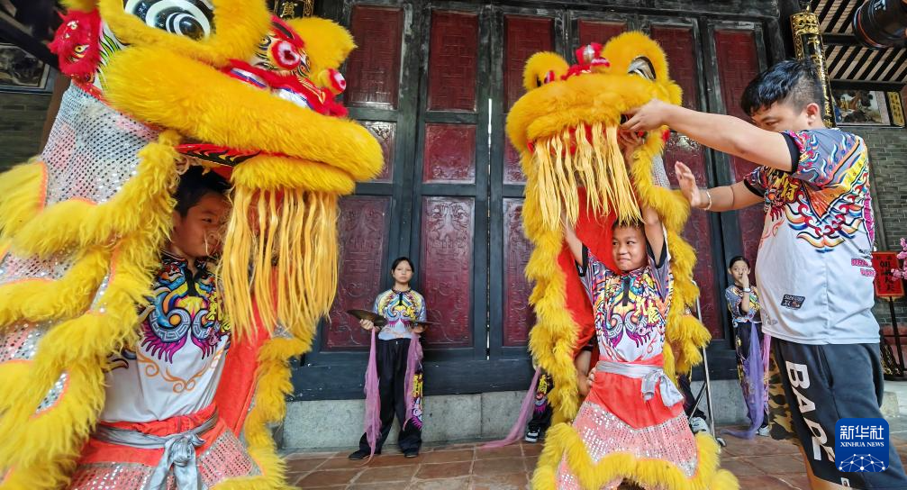 当日是六一国际儿童节,深圳市宝安区新桥街道新桥社区的数十名孩子来到曾氏大宗祠,学习洪拳和醒狮基本功。