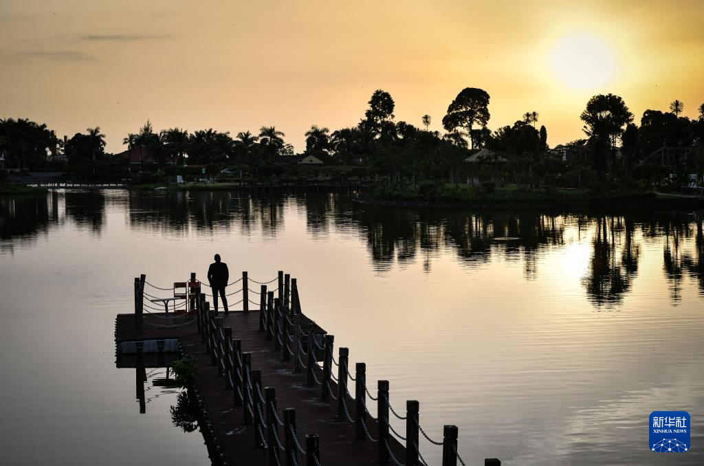 5月19日,在赤道几内亚首都马拉博,人们走在马拉博国家公园里。