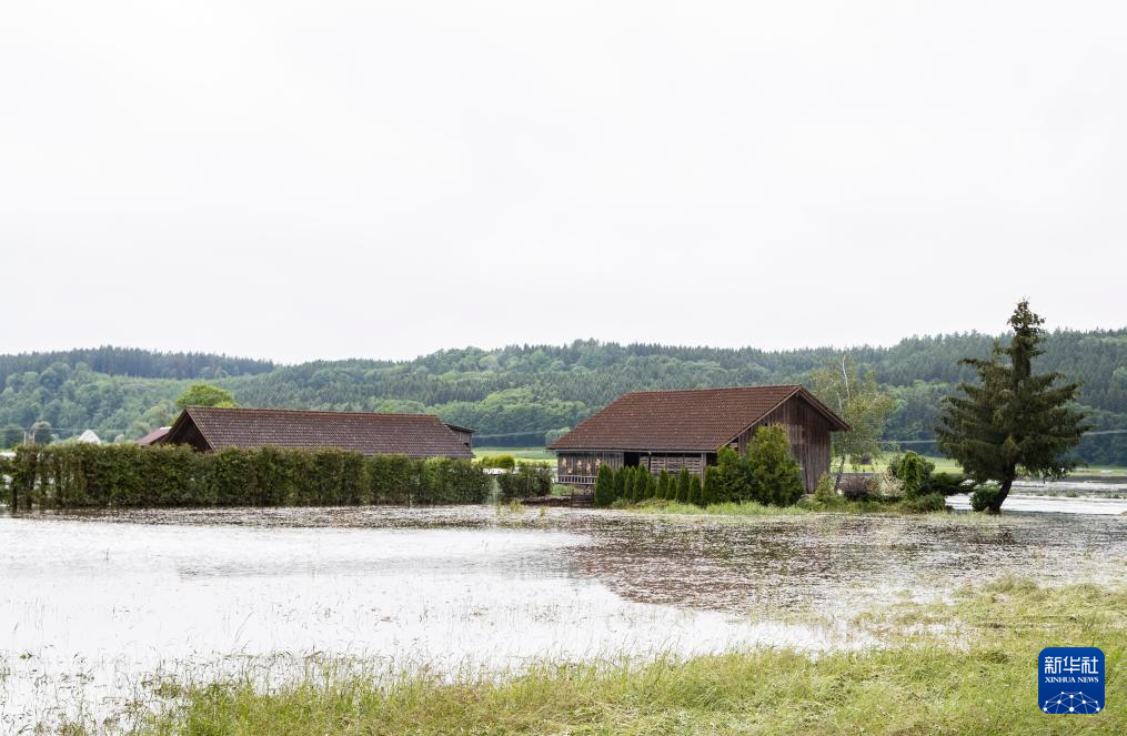 这是6月2日在德国巴伐利亚州巴本豪森拍摄的被洪水围困的房屋。