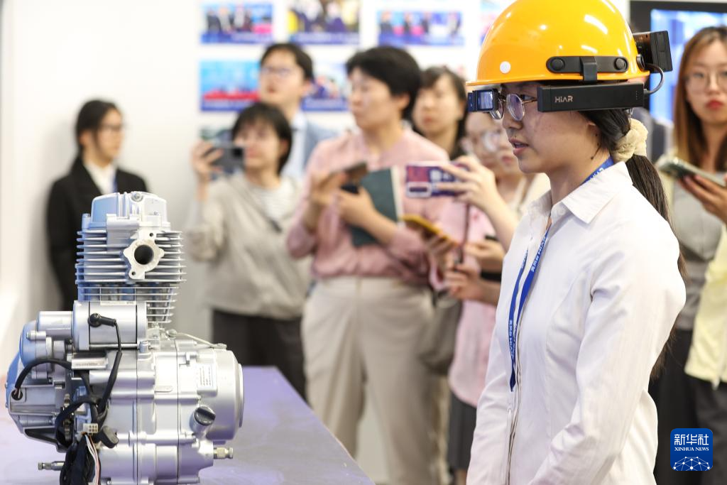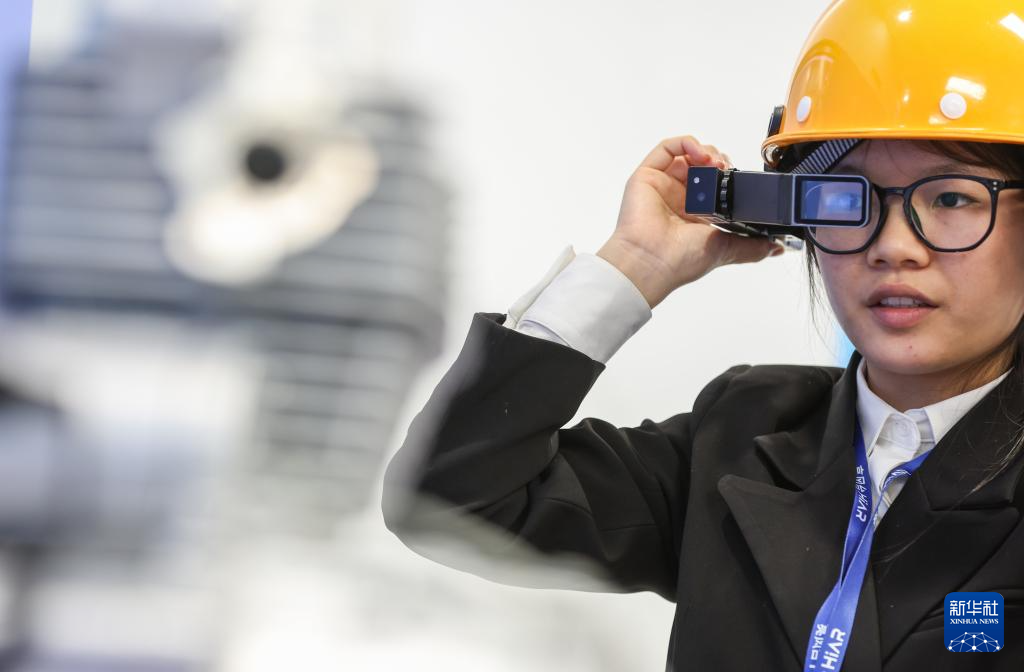 6月1日,昆山元宇宙产业园内的亮风台(昆山)信息科技有限公司里,工作人员在演示AR智能穿戴设备赋能工业应用的场景。