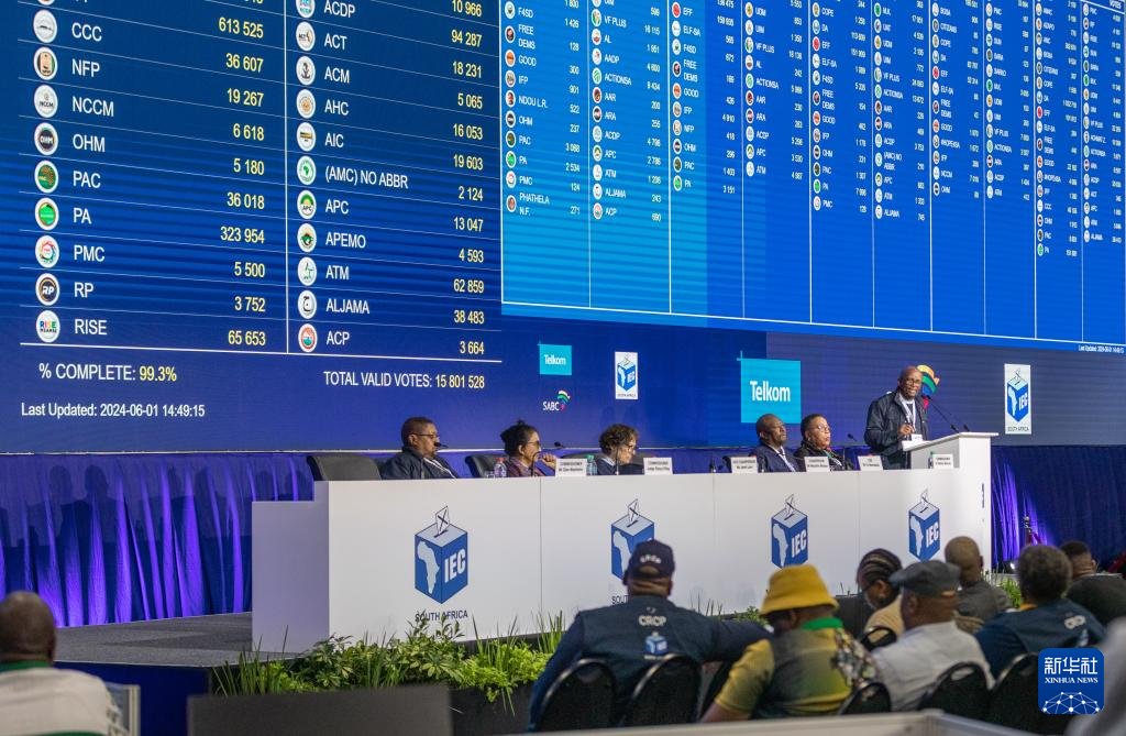 南非独立选举委员会6月1日发布的初步计票结果显示,执政党非洲人国民大会(非国大)在国民议会(议会下院)选举中获得40.25%的选票,位列第一。