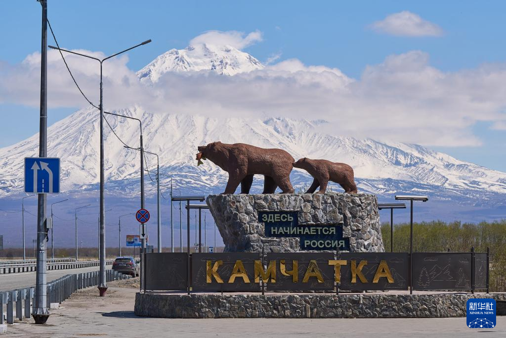 这是6月2日在俄罗斯堪察加边疆区拍摄的名为“俄罗斯从这里开始”的地标性雕塑。