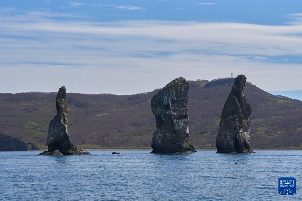 这是6月3日在俄罗斯堪察加边疆区拍摄的“三兄弟石”。