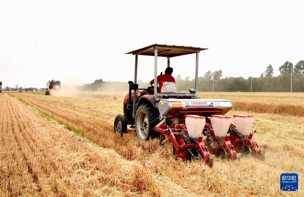 6月4日,在河北省邢台市南和区左村,农民驾驶播种机播种玉米。