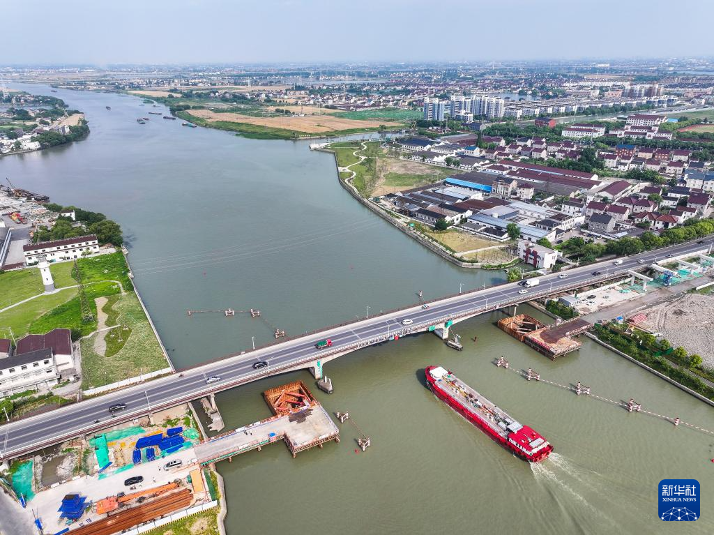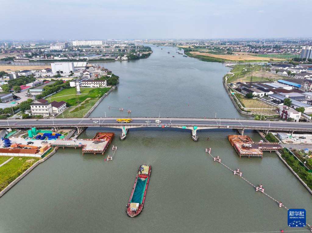 6月4日拍摄的长湖申线(江苏段)航道整治工程东段项目施工现场(无人机照片)。