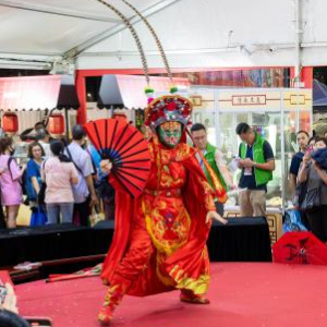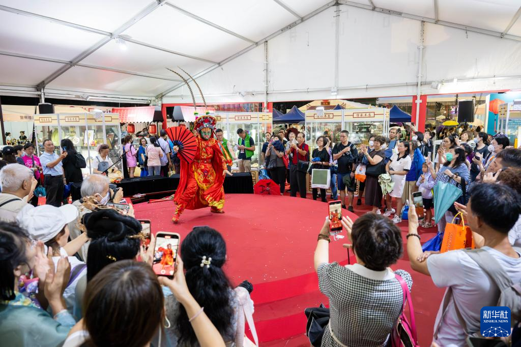 6月3日,人们在香港维多利亚公园举行的第二届“家乡市集嘉年华”非物质文化遗产展区观看川剧变脸表演。