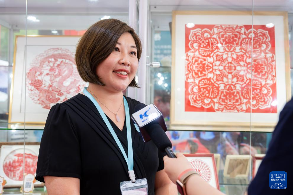 6月3日,香港安徽联谊总会副会长李媛在香港维多利亚公园举行的第二届“家乡市集嘉年华”非物质文化遗产展区接受采访。