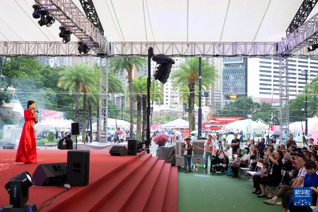 6月3日,黄梅戏演员、第31届中国戏剧梅花奖得主袁媛在香港维多利亚公园举行的第二届“家乡市集嘉年华”上表演。