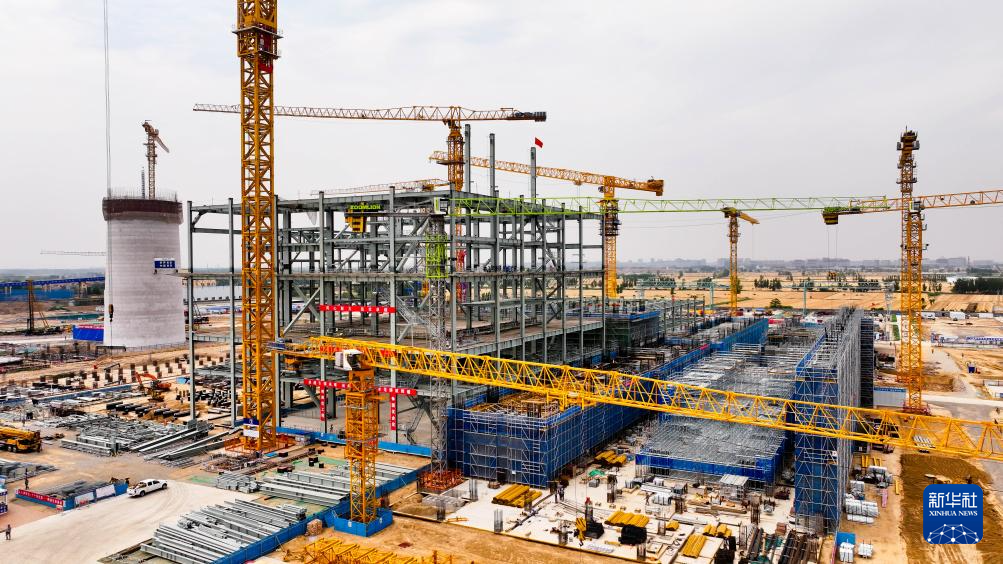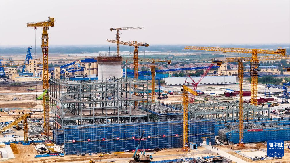 6月5日拍摄的位于山东省郓城县的大唐郓城630℃国家电力示范项目建设现场(无人机照片)。