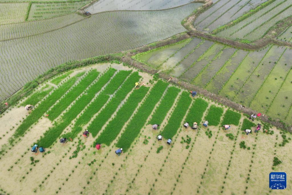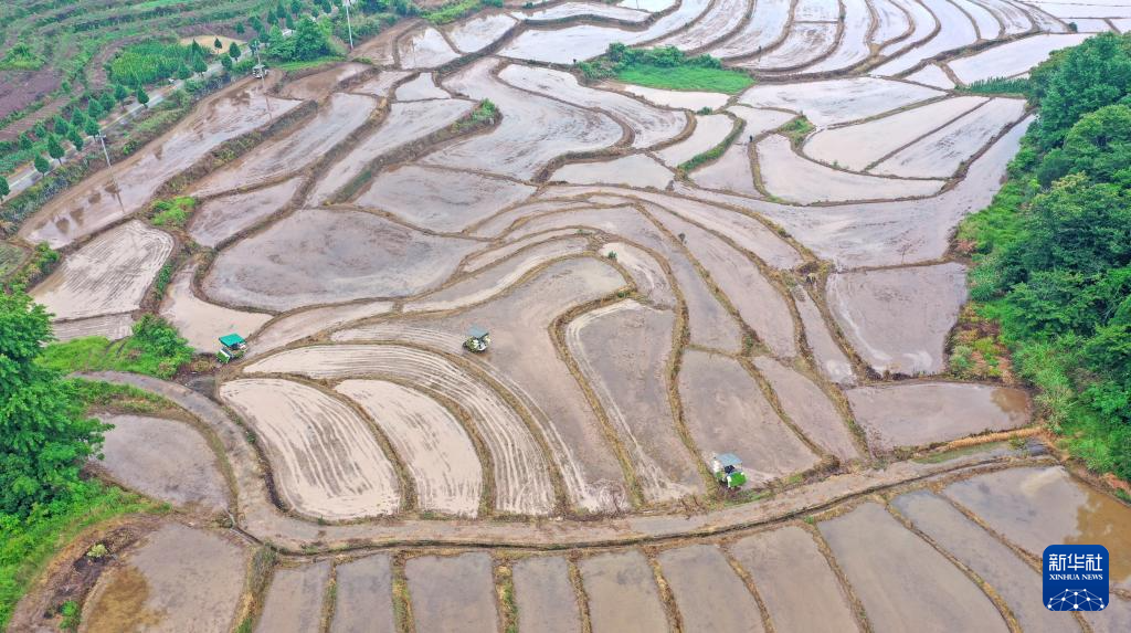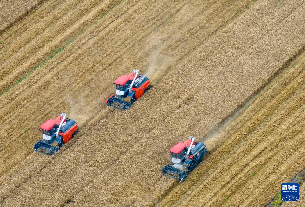 当日是芒种节气,各地农民抓紧开展收获播种等农事作业,田间地头呈现一派忙碌景象。