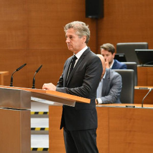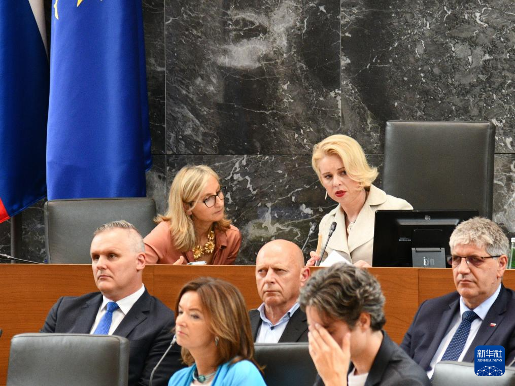 6月4日,斯洛文尼亚国民议会议长祖潘契奇(后右)在卢布尔雅那出席国民议会会议。