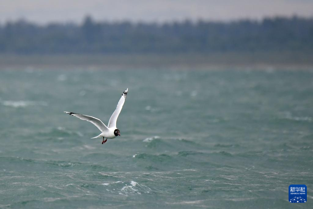遗鸥在红碱淖国家级自然保护区湖面上飞翔(6月4日摄)。