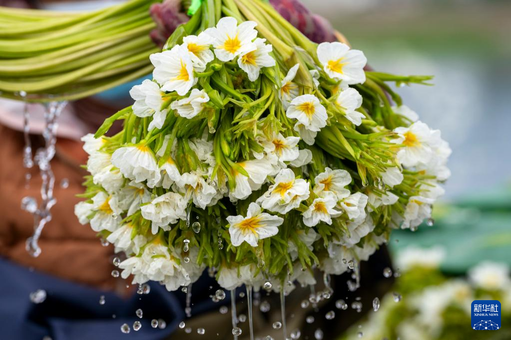 近日,云南省大理白族自治州洱源县海菜种植户紧抓农时,抢收海菜。海菜花对生存环境的水质要求高,被视为水质的“试金石”与“风向标”。