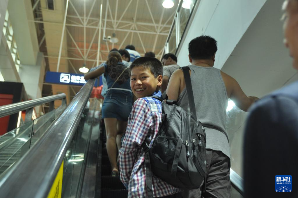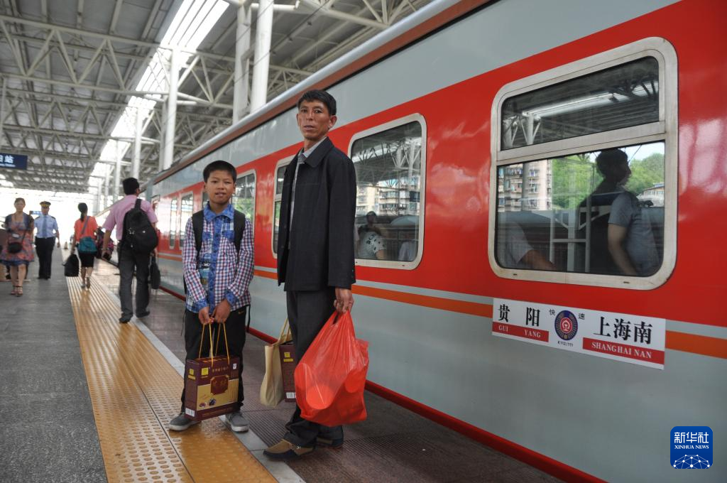 邓广伟与父亲来到贵阳火车站,准备搭乘前往上海的火车检查眼睛(2014年7月28日摄)。