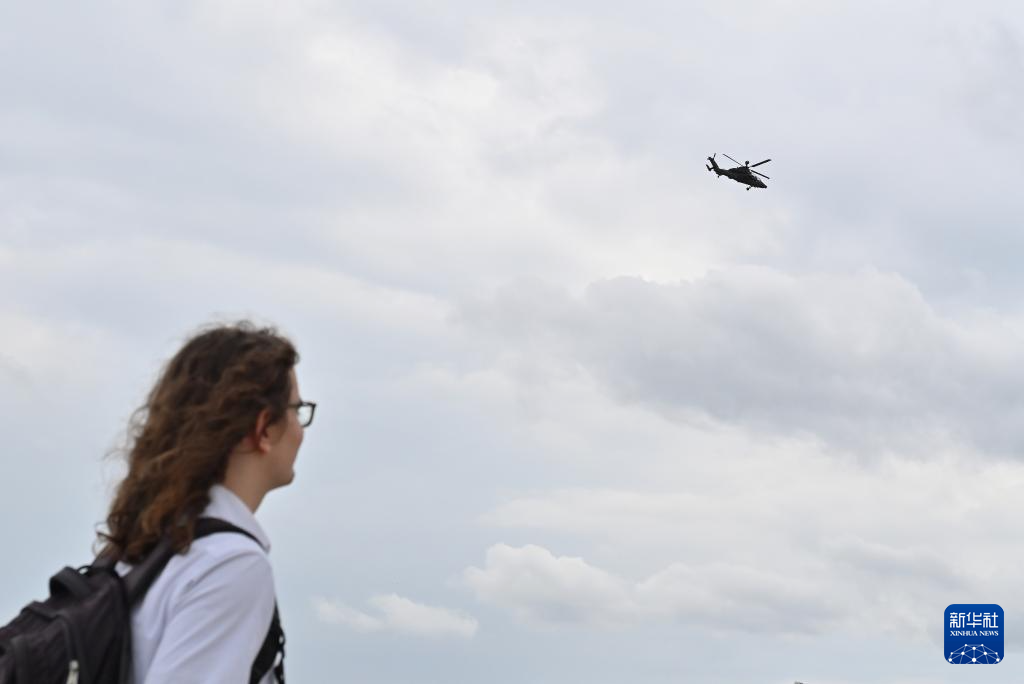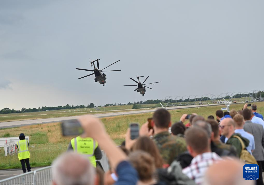 6月5日,在德国舍内费尔德,人们在2024柏林国际航空展上观看直升机表演。