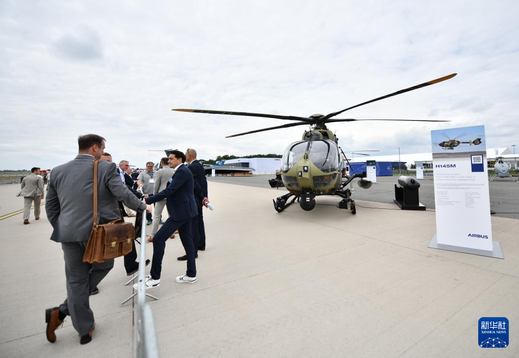 6月5日,在德国舍内费尔德,人们在2024柏林国际航空展上参观H145M直升机。