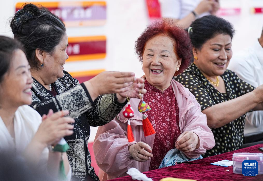 6月6日,居民在乌鲁木齐市天山区固原巷社区迎端午活动中制作香囊。