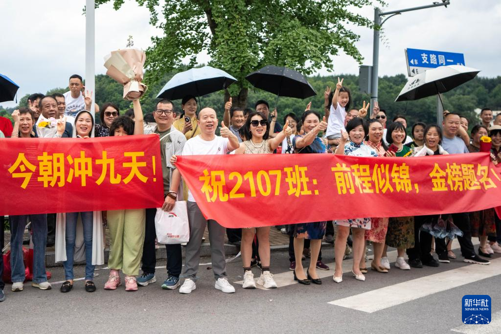 6月6日,在长沙市同升湖高级中学,送考家长为考生加油鼓劲。