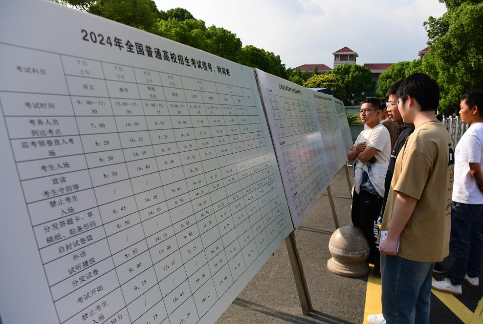6月6日,在江苏省太湖高级中学考点,考生查看考场信息。
