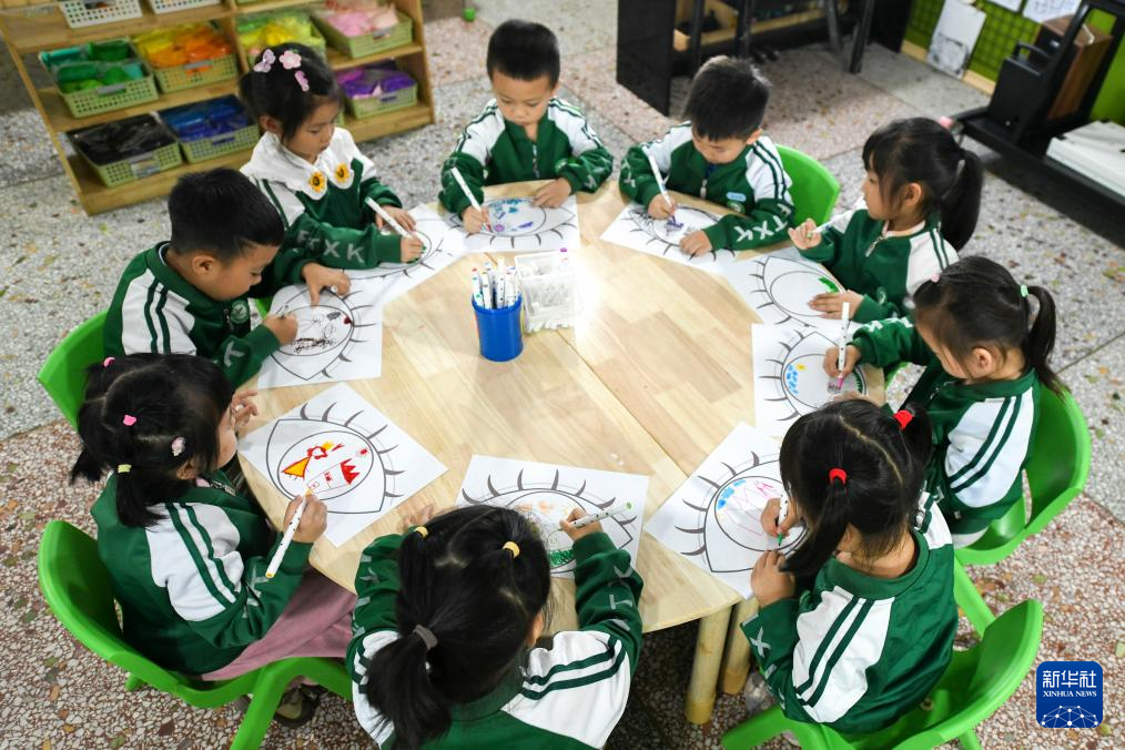 6月6日,湖南省常宁市幼儿园兰江园的小朋友在爱眼护眼主题活动上画眼睛。