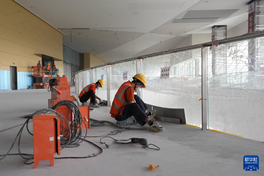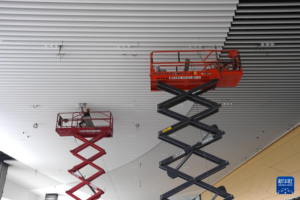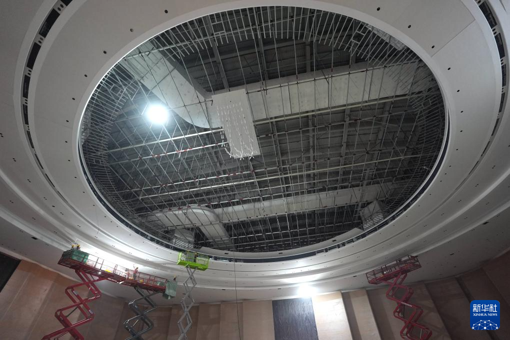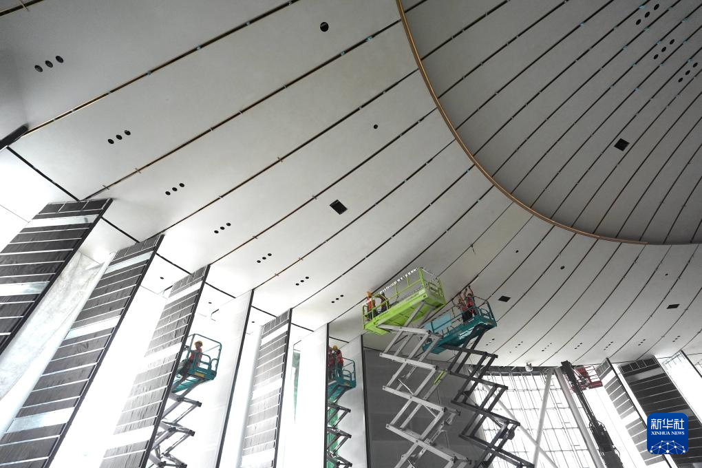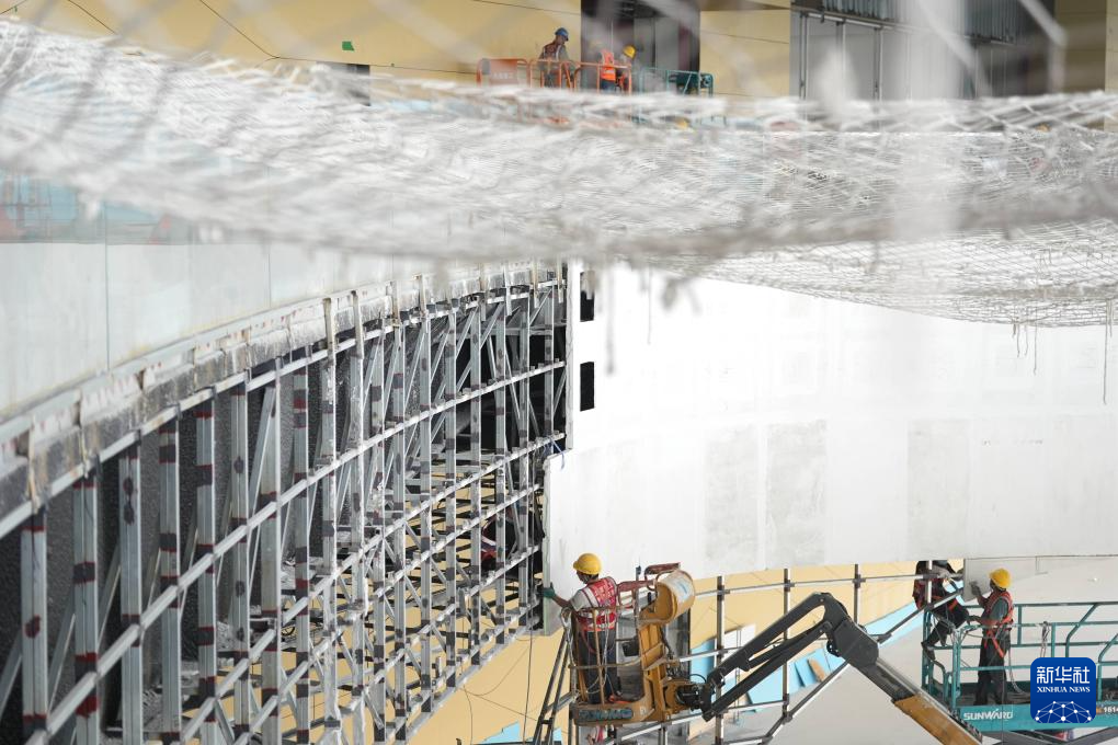 6月5日,在国家会议中心二期工程内部,北京建工集团施工人员进行内部精装施工。