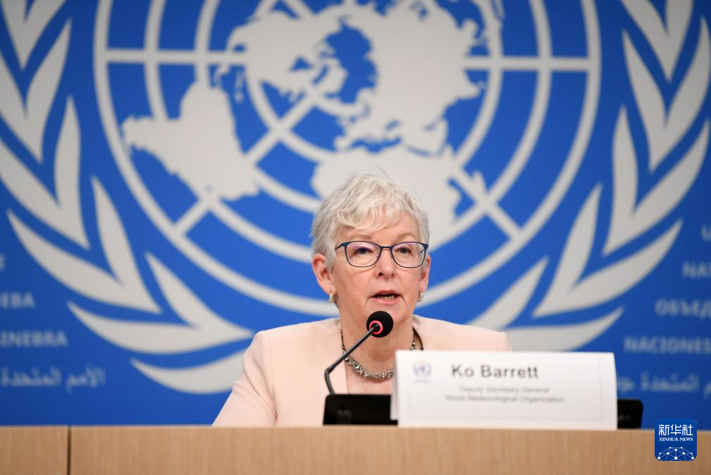6月5日,世界气象组织副秘书长科·巴雷特在瑞士日内瓦举行的新闻发布会上发言。