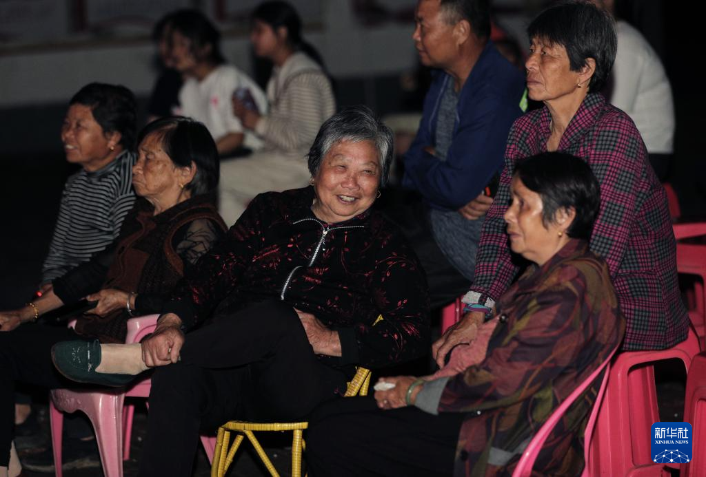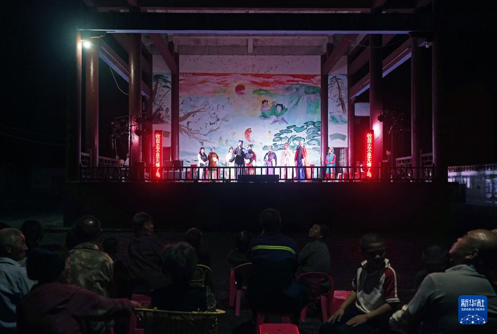 在广昌县头陂镇西港村,村民在观看孟戏演出(5月10日摄)。