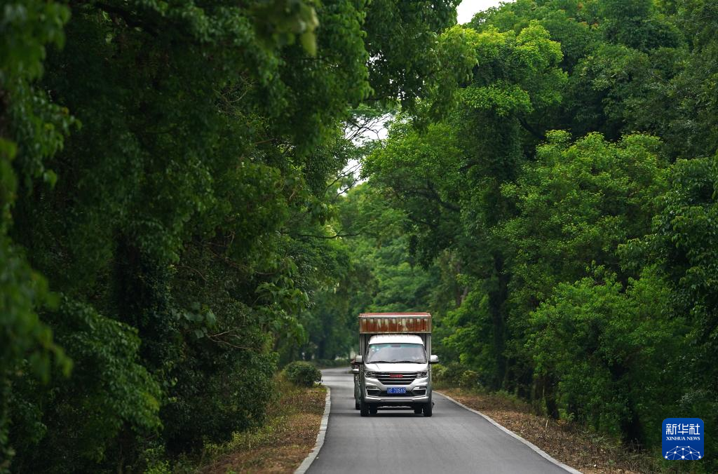 装满孟戏服装、道具的货车行驶在送戏下乡的路上(5月10日摄)。