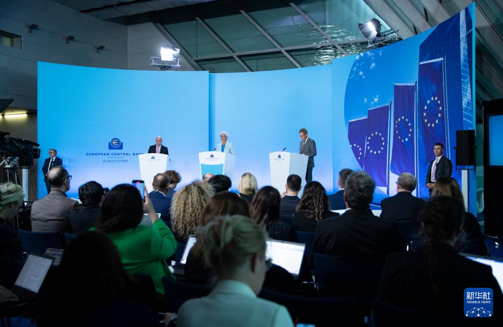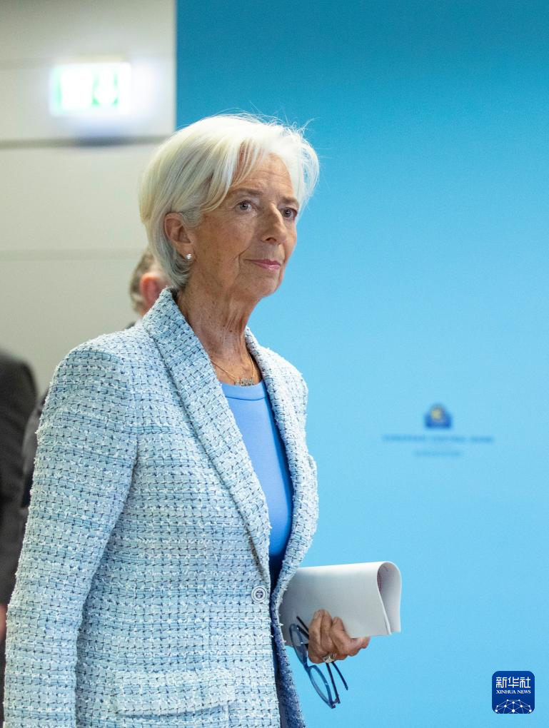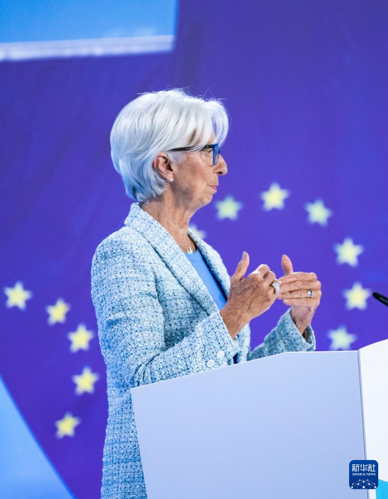 6月6日,欧洲中央银行行长拉加德在德国法兰克福欧洲中央银行总部出席新闻发布会。