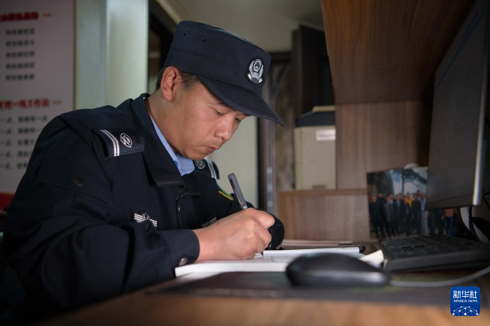6月4日,“守松人”丁丁将巡查情况记录到《迎客松日记》里。