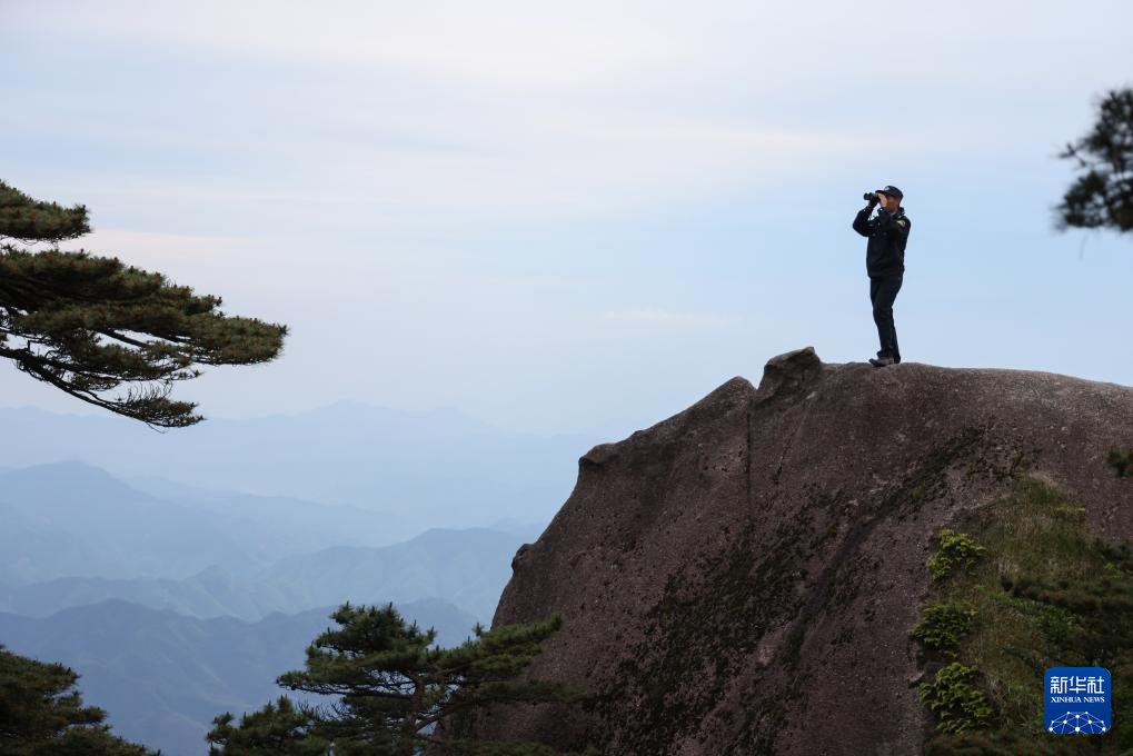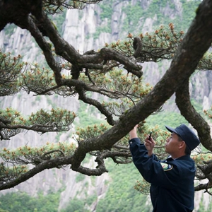 黄山迎客松,或许是中国“曝光率”最高的松树。它生长在海拔1670米处,其伸向一侧的枝干,仿佛热情张开的臂膀,欢迎来自世界各地的宾客,故而得名“迎客松”。为更好地保护迎客松,20世纪80年代起,黄山配备了专职“守松人”。2016年,丁丁担任守松人,协助第19任守松人胡晓春完成迎客松的日常巡护和监测工作,两人不仅是同事,更是师徒。每天早晨6点半丁丁开始巡护观测,了解迎客松枝丫、松针、树皮的细微变化,检查支撑架、拉索、防雷设施情况,利用无人机对迎客松周边环境进行巡查……白天每隔两个小时进行一次例行检查,如果遇到恶劣天气,每半小时就要巡护一次;夜间,根据红外线防侵入报警系统信号,随时起床查看情况。“迎客松对我来说不单单是一棵树,更像是朋友和亲人,我能感受到这棵千年古树蓬勃的生命力。”丁丁说,自己会把守护迎客松这件事一直坚持下去。