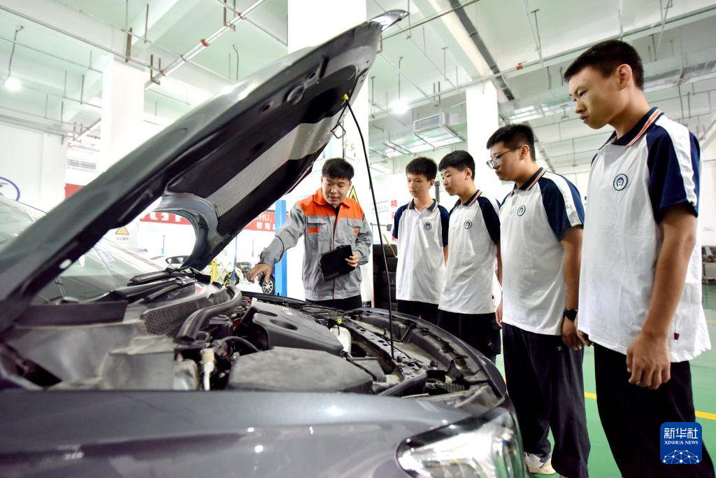 6月7日,威县职业技术教育中心教师在指导学生学习汽车维修技术。