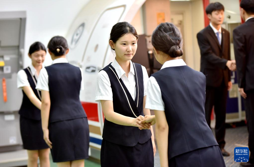 6月7日,威县职业技术教育中心航空乘务专业学生在练习礼仪动作。