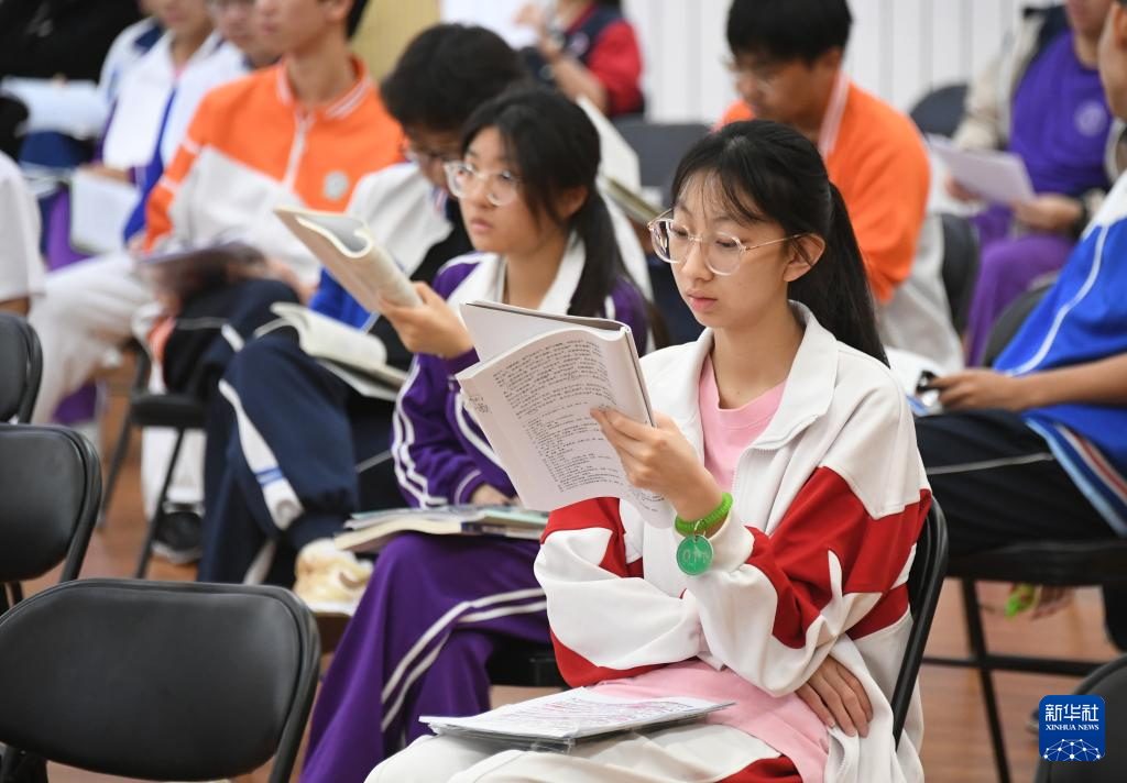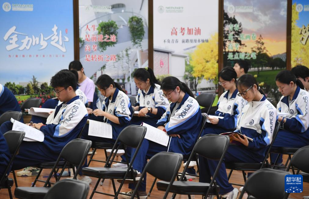 6月7日,在中国农业大学附属中学考点,考生在休息区等待考试。