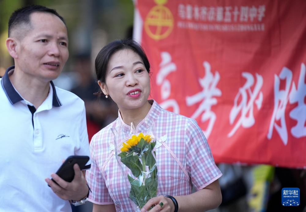 6月7日,在新疆乌鲁木齐市第54中学考点外,考生家长翘首以待。