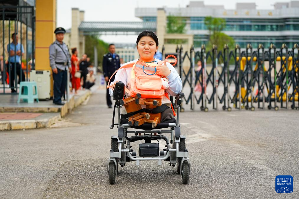 6月7日,在贵州省黔东南州凯里实验高级中学考点,一名特殊考生进入考场。