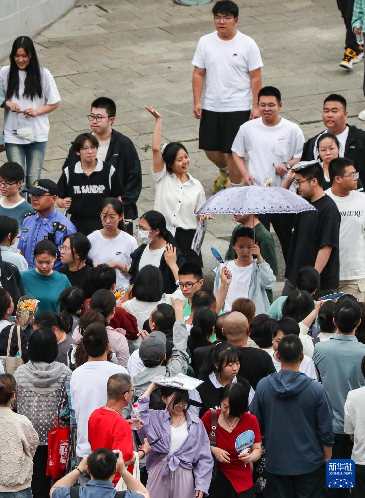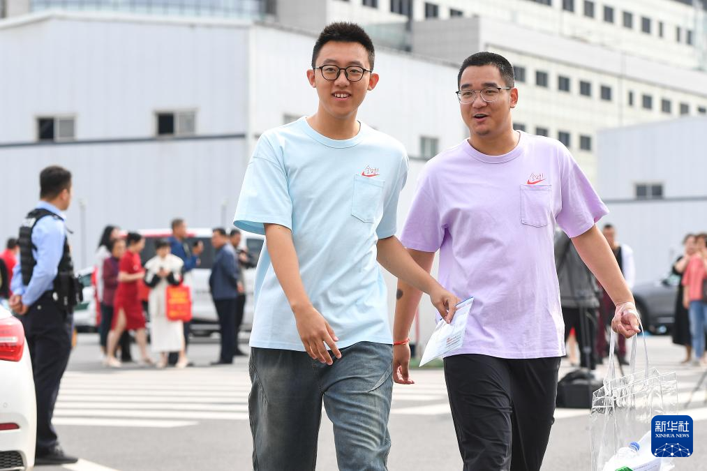 6月7日,考生们在江苏省南京市建邺区中华中学考点进场备考。