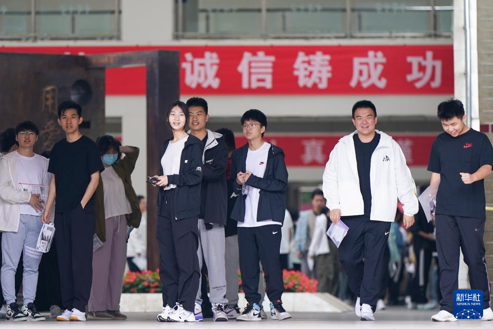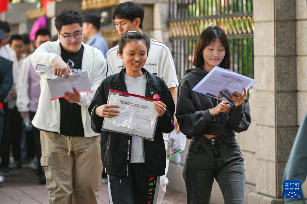 6月7日,考生结束第一场考试后走出沈阳市第五中学考点。