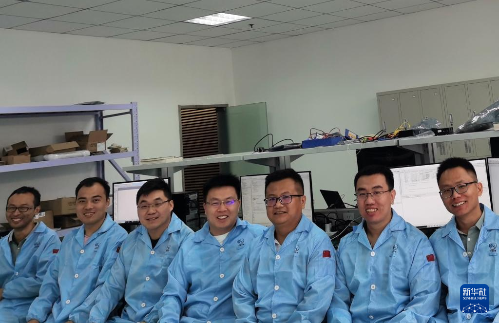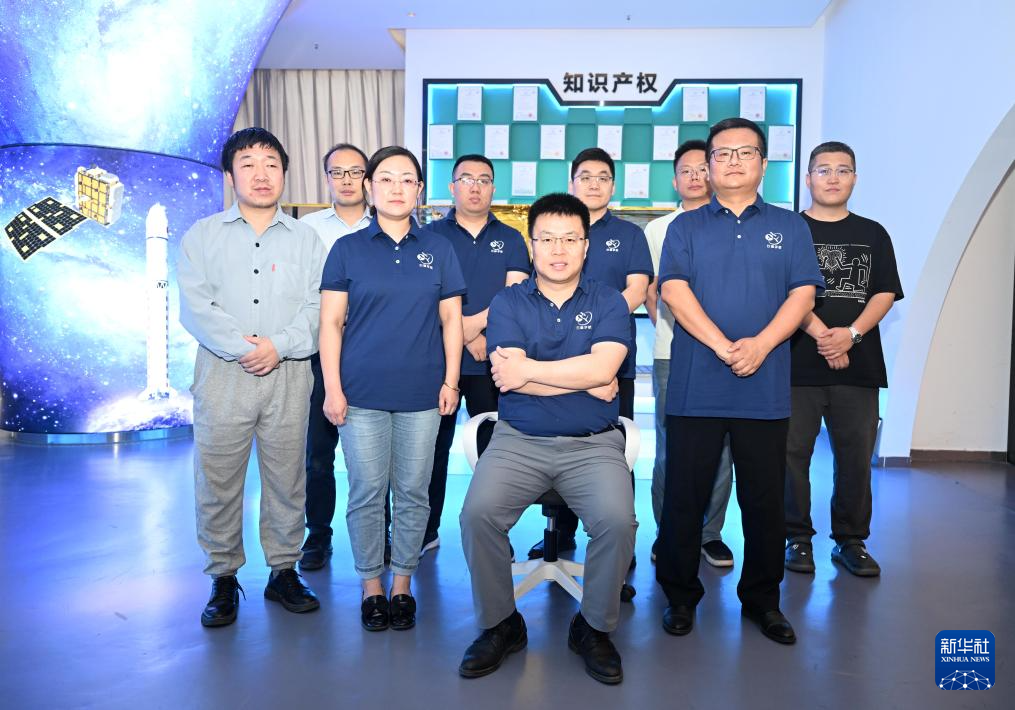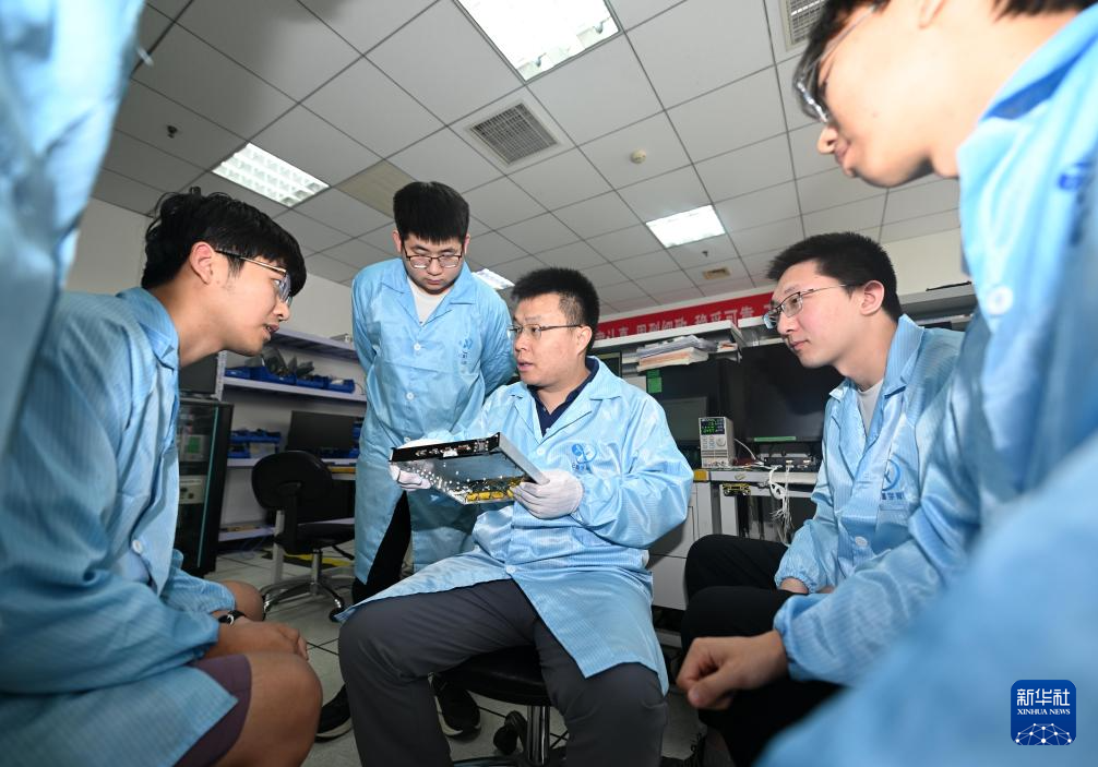 在云遥宇航的研发部,李峰辉和团队成员讨论一款卫星核心部件的集成电路板(6月4日摄)。