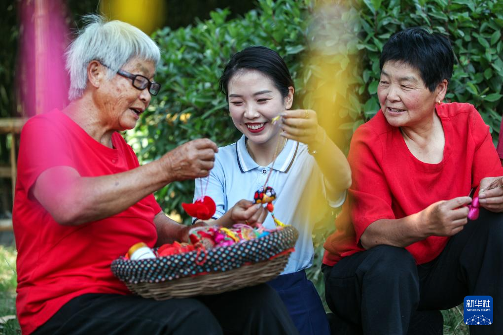 6月7日,在河南省焦作市博爱县磨头镇狮口村,村民在制作香囊。