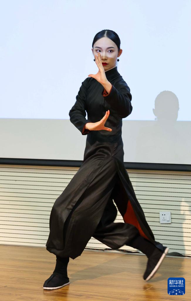 6月7日,来自深圳歌剧舞剧院的王沅琳在展示传统舞蹈和武术相融合的舞蹈动作。
