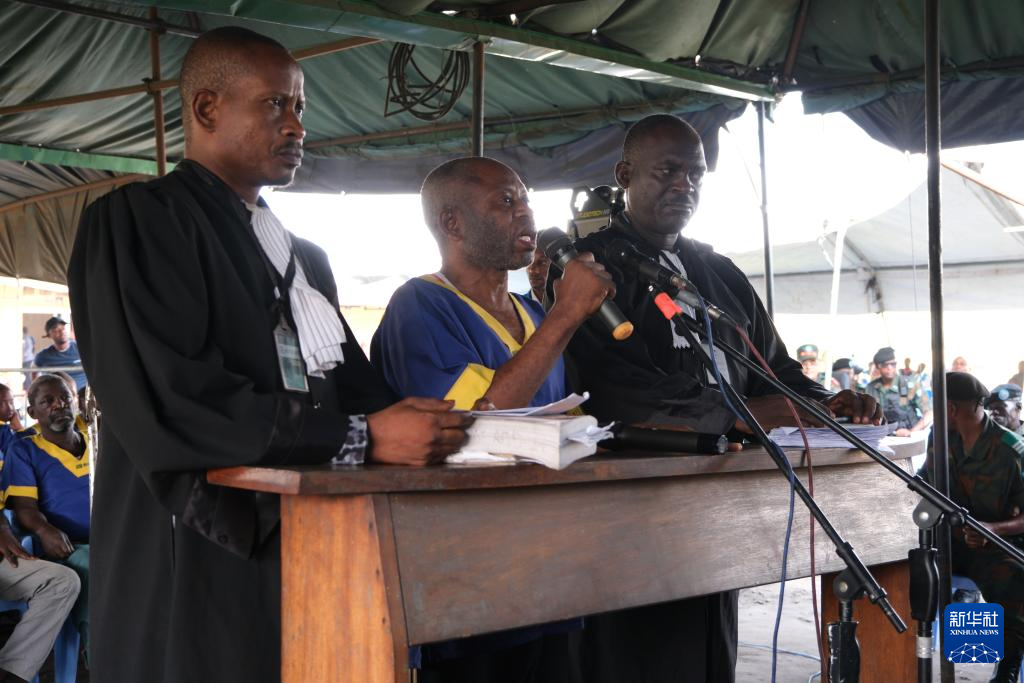 6月7日,在刚果(金)首都金沙萨一法庭,嫌疑人律师在庭审中发言。